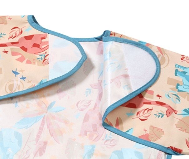 Zástěra s rukávy je voděodolná a snadno se čistí, takže se vám bude hodit při učení samostatného stravování. Zapínání na suchý zip.