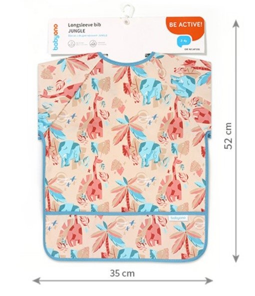 Zástěrka, bryndák nepromakavý s dlouhým rukávem a kapsíčkou BabyOno - Jungle, béžová