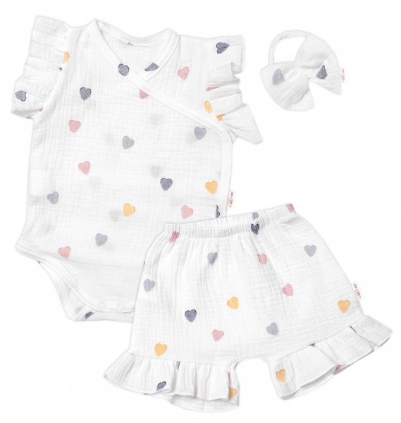 Zavinovací body, kraťasky + čelenka, mušelín, Srdíčko, Baby Nellys