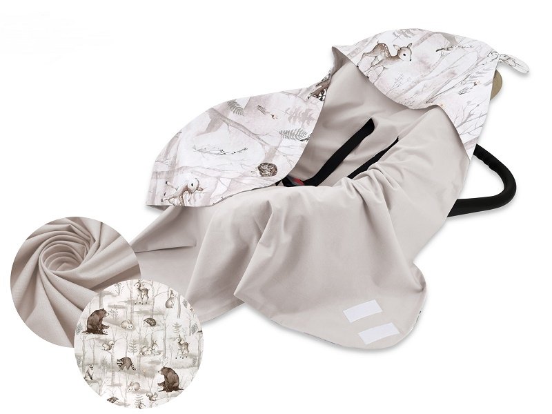 Zavinovací deka s kapucí, bavlna + jersey, Medvěd a kamarádi - šedý