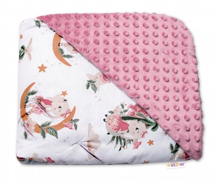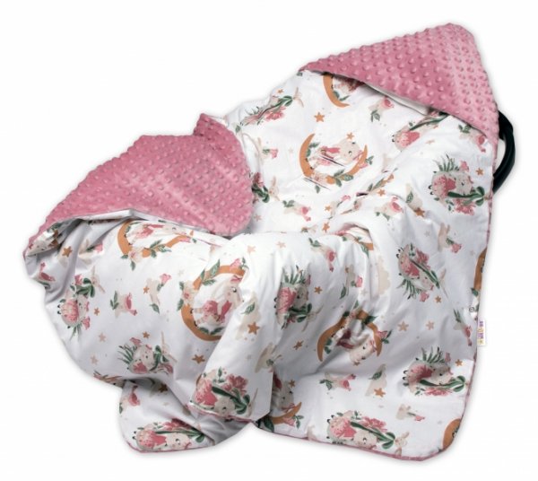 Zavinovací deka s kapucí do autosedačky minky Bunny Star, pudrová, Baby Nellys