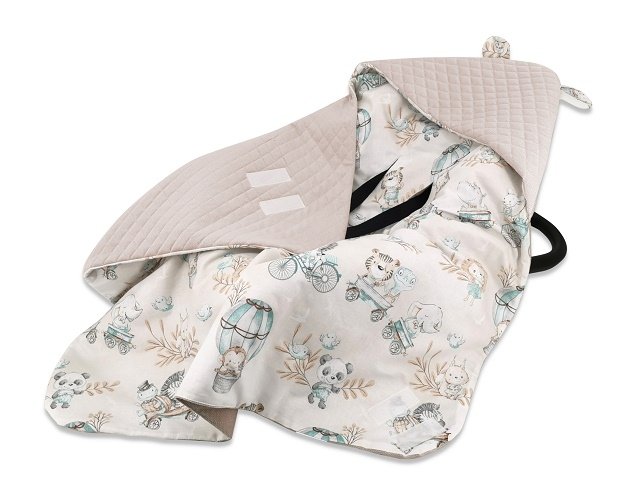 Zavinovací deka s kapucí Velvet/bavlna, ZOO na cestách - cappuccino/mátová