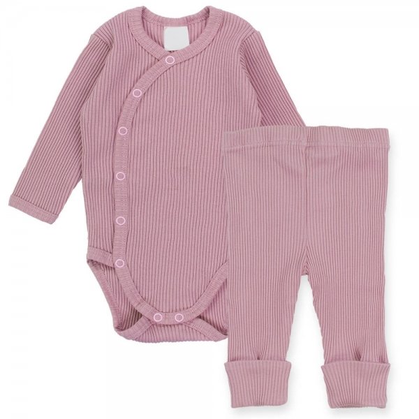 Zavinovací žebrované body + tepláčky, 2D sada MBaby, pudrově