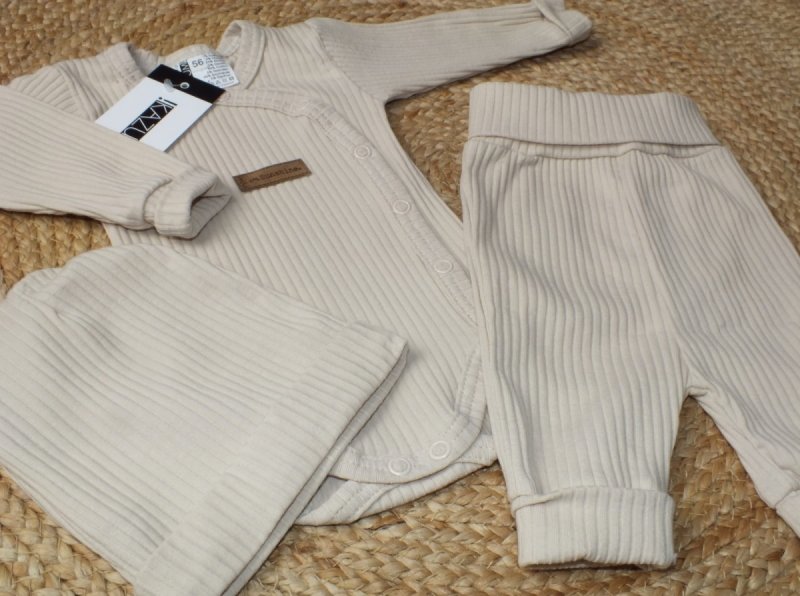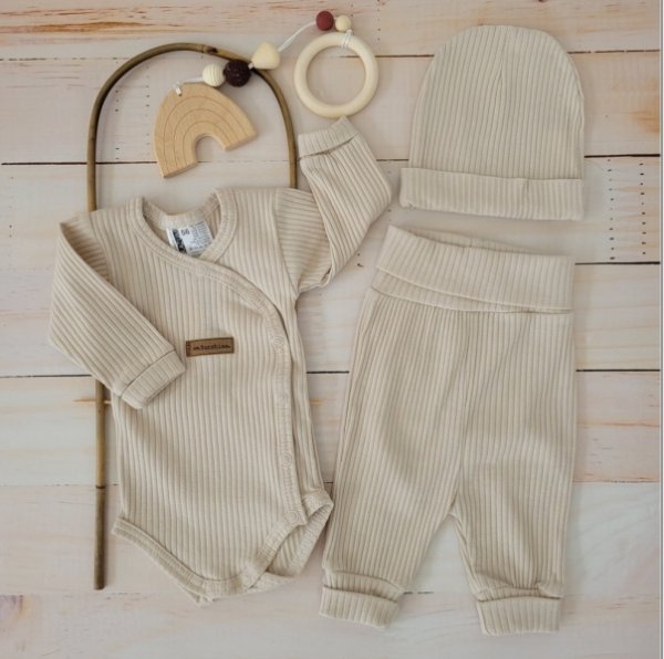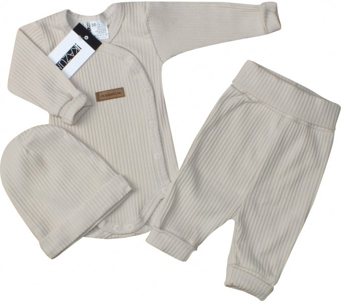 Žebrované zavinovací body, tepláčky a čepička Kazum 3D bavlněná sada