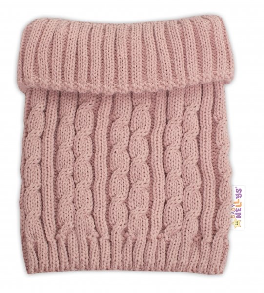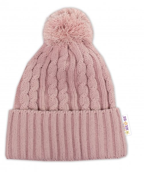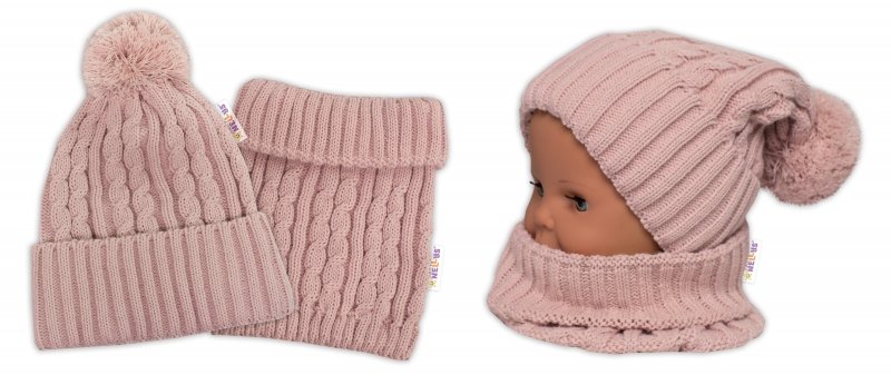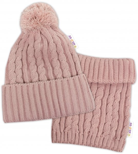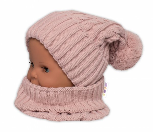 Zimní čepice s bambulí + komínek Baby Nellys - pudrová, růžová, vel. 48-52cm - 98-104 (2-4r)