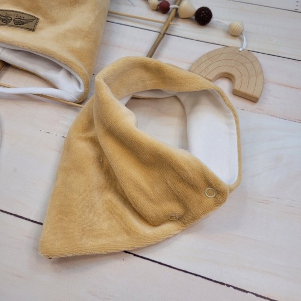 Šátek má dvoustupňové nastavení a zapíná se na 2 patentky.