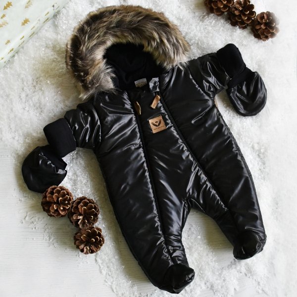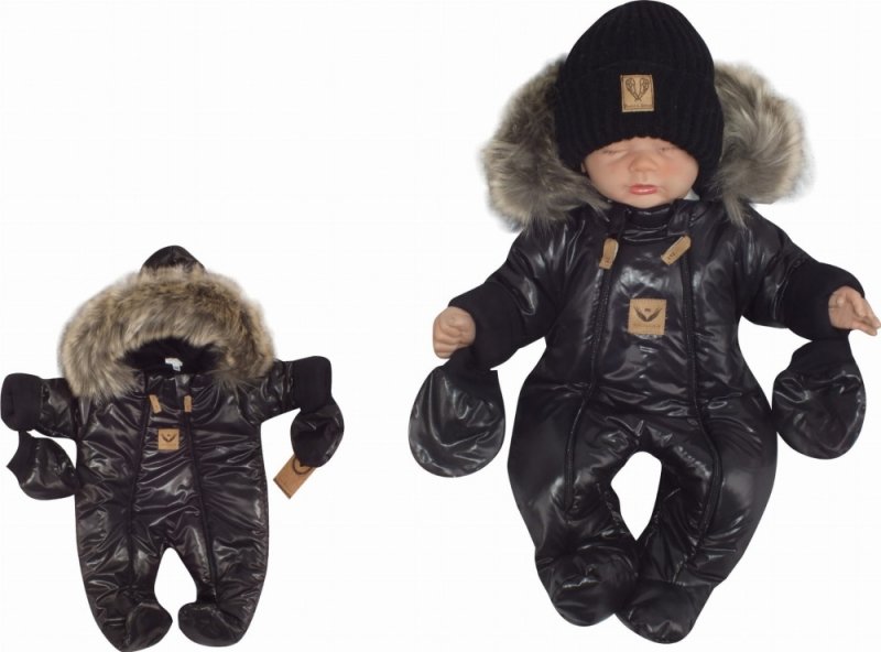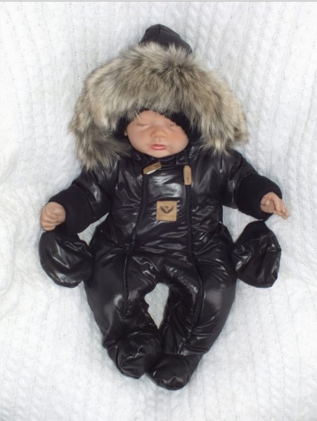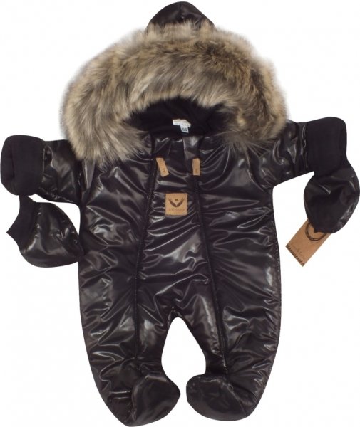 Zimní kombinéza s dvojitým zipem, kapucí a kožešinou + rukavičky Z&Z