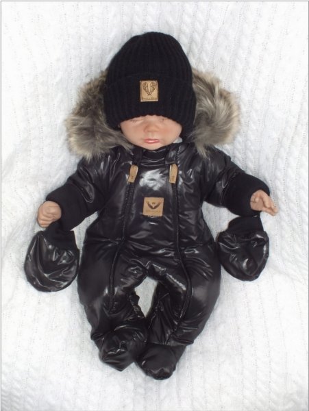 Zateplená zimní kombinéza s kapucí + rukavičky.