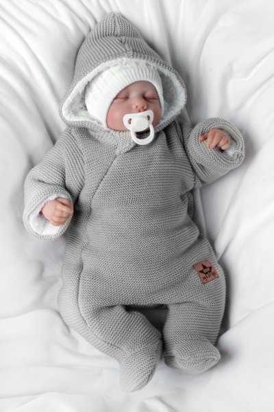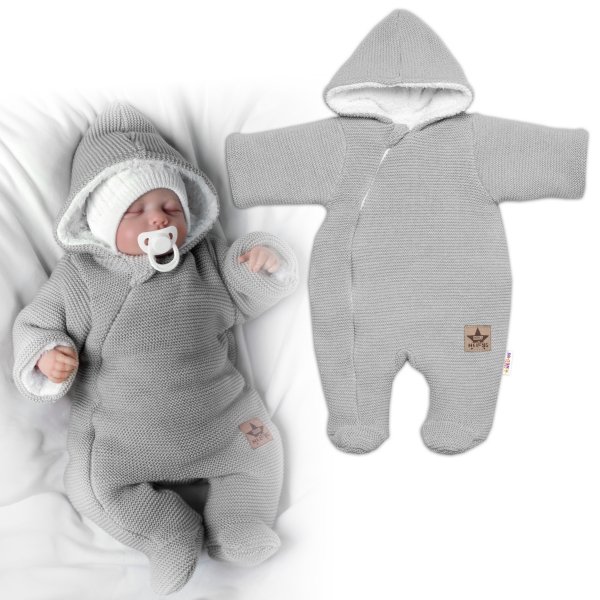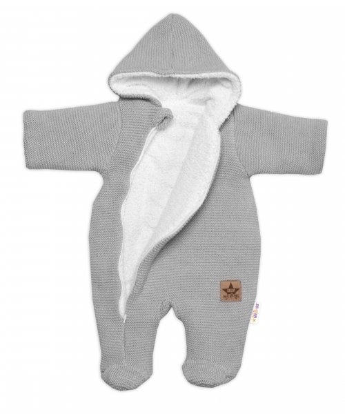 Zimní oteplená kombinézka/overálek s kapucí Baby Nellys - světle šedá - 56 (1-2m)