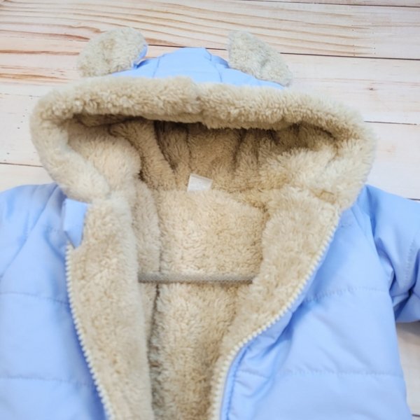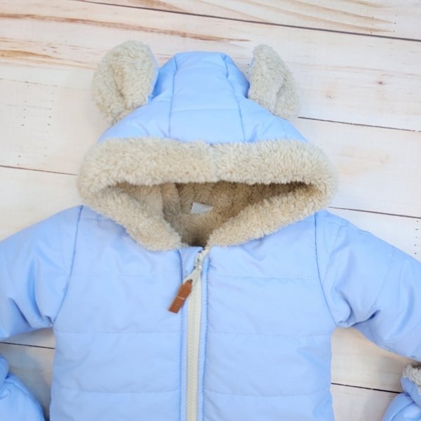 Součástí jsou rukavice a botičky na šňůrce. Kapuce má okouzlující uši.