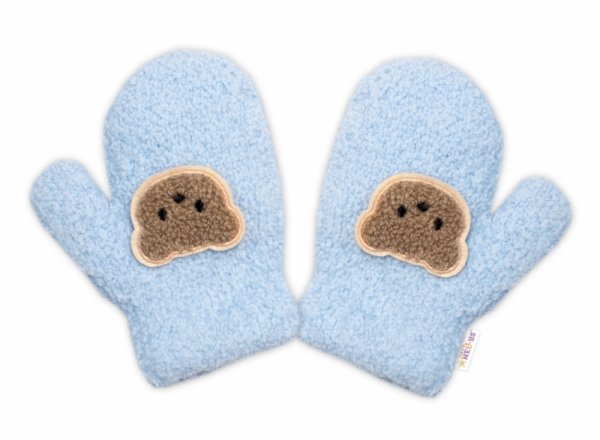 Zimní rukavičky, froté Medvídek, Baby Nellys, modré, 98/104 - 98-104 (2-4r)