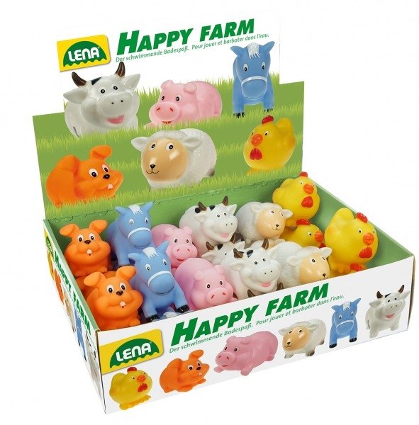 Zvířátka stříkací 7cm Veselá farma gumová asst 6 druhů 24ks v boxu.
